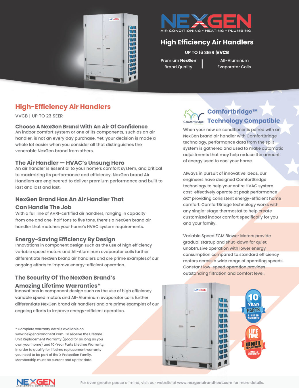 ComfortBridge Technology enables the air handler/furnace to communicate with any single-stage thermostat, allowing for customized indoor comfort. In addition to its energy saving design, the VVCB is protected from the elements by a heavy-gauge galvanized steel enclosure with a baked-on powder-coat finish. It also uses ComfortAlert diagnostics for continuous performance monitoring, which helps spot any problems early. Compatible with Nest systems, the air furnace works with home automation systems and can be controlled/monitored via a smartphone.