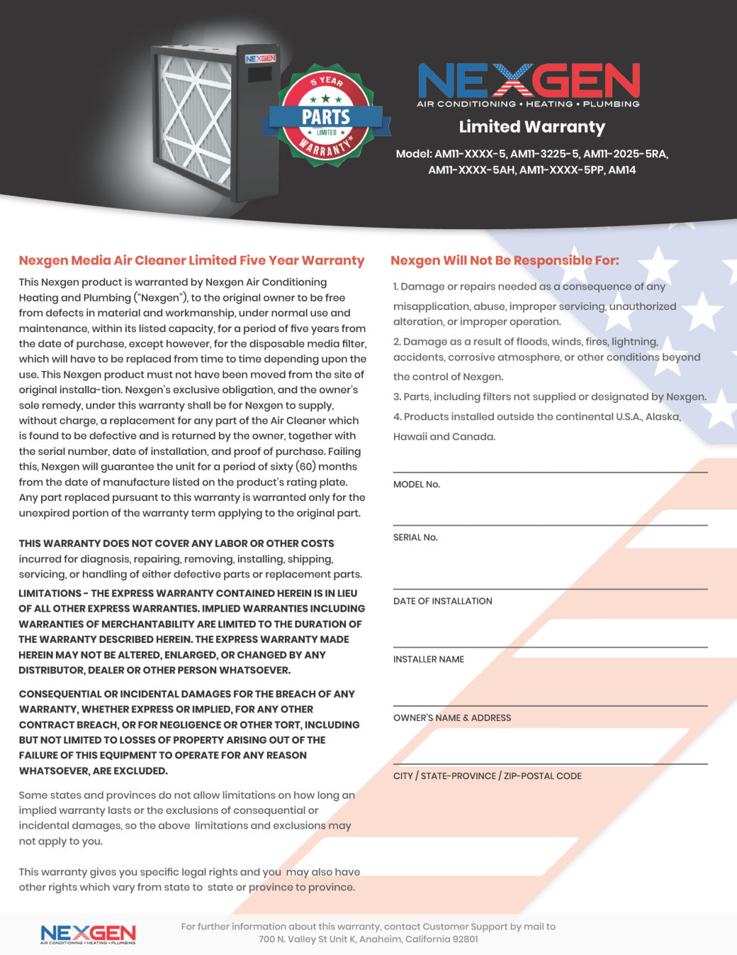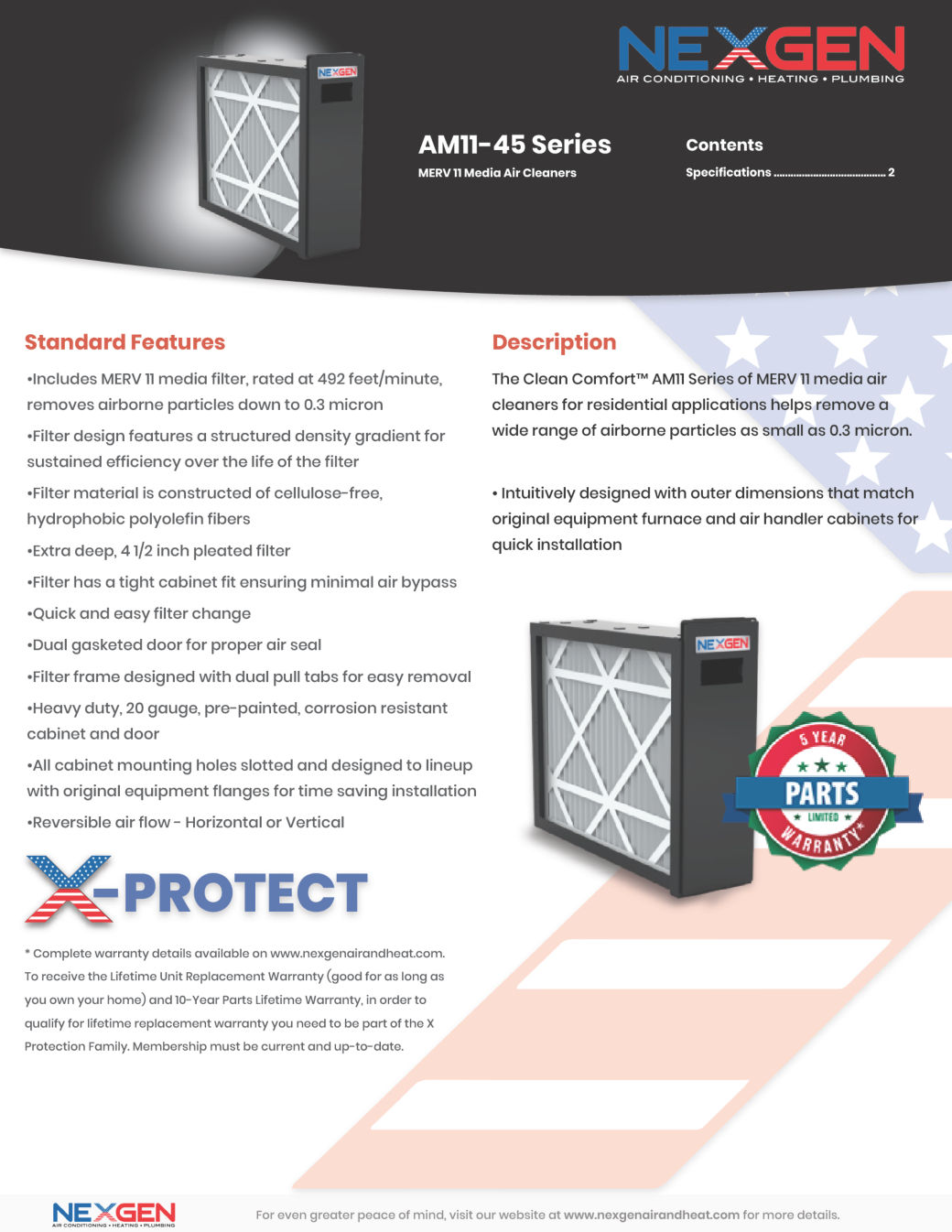 Air handler and furnace direct fit, low restriction MERV 11 media air cleaners.