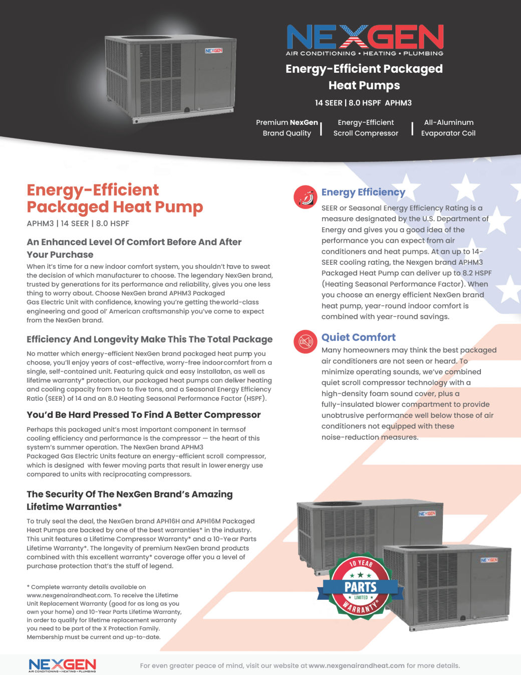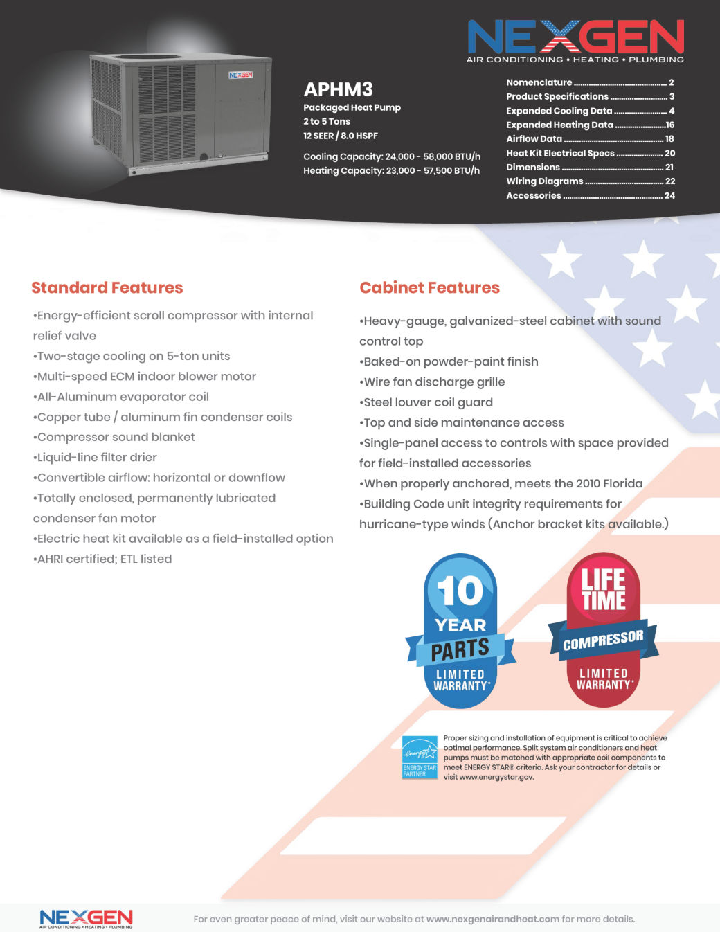 The APHM3 packaged heat pump has several built-in advanced energy-efficient features: