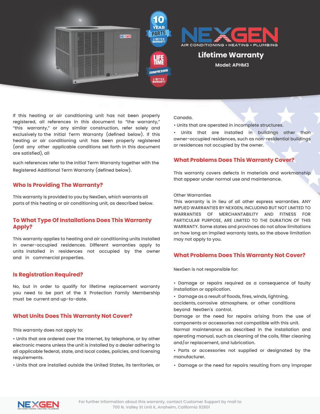The unit includes only premium-quality parts including a multi-speed ECM indoor blower motor, liquid-line filter drier, and enclosed, permanently lubricated condenser fan motor. It’s cabinet is made of heavy-gauge galvanized steel and is further protected by a baked-on powder-paint finish. Proper anchoring enables the heat pump to meet 2010 Florida Building Code requirements for hurricane-type winds.