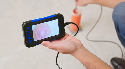 We use a fiber optic camera attached to a long, flexible cable, which is a cost-efficient way to detect leaks. It is inserted through a single access point and provides our service technicians with a high-resolution view of the interior of your pipes. Long fiber optic cables can be extended as far as several hundred feet down your pipes during a real-time visual inspection. Regulatory officials use these same cables to ensure piping is up to code.